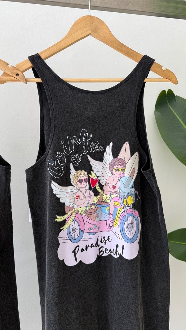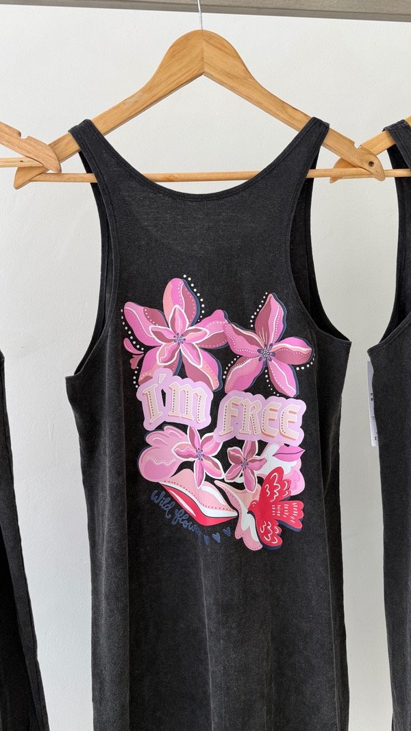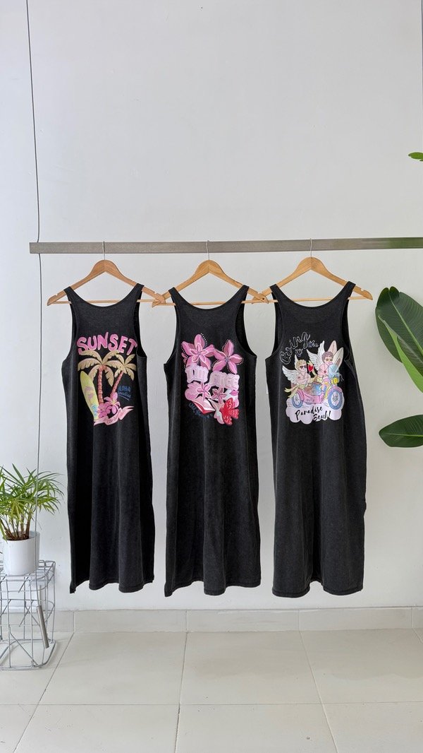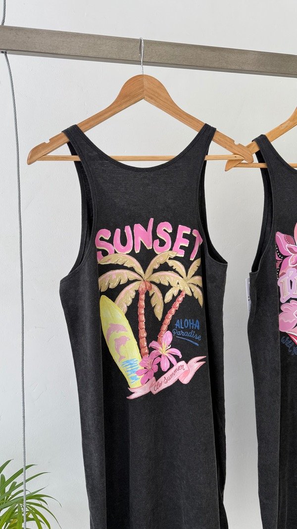 Vestido de algodón con estampa trasera, largo al tobillo. Talle único, abarca de un S al L