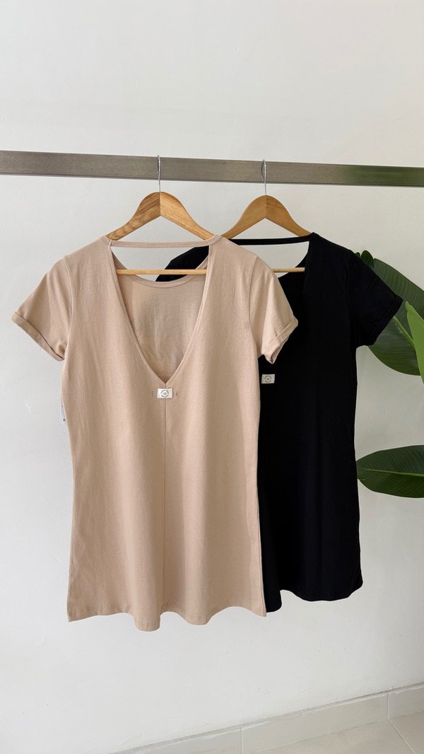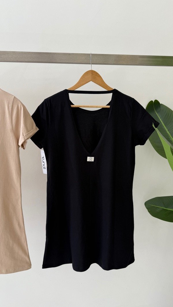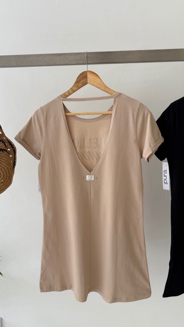 Vestido de algodón con estampa delantera y espalda descubierta en V. Molderia pequeña