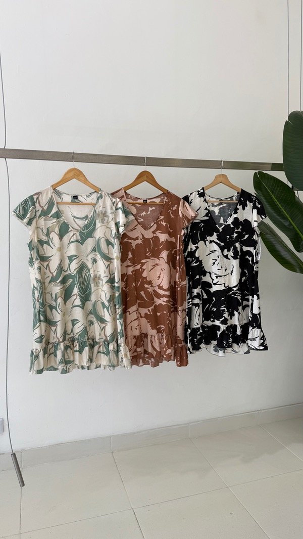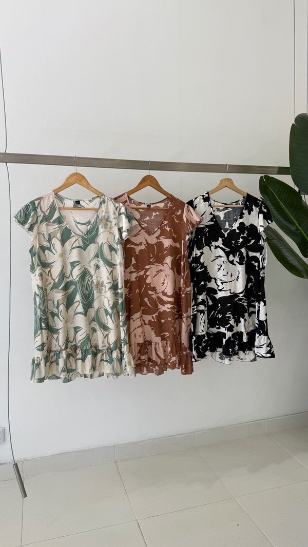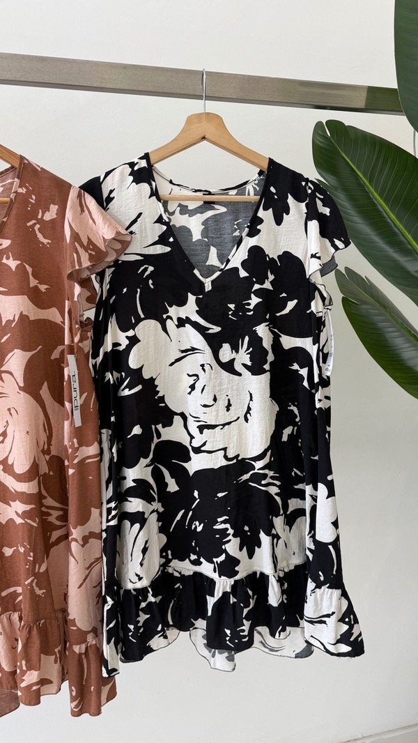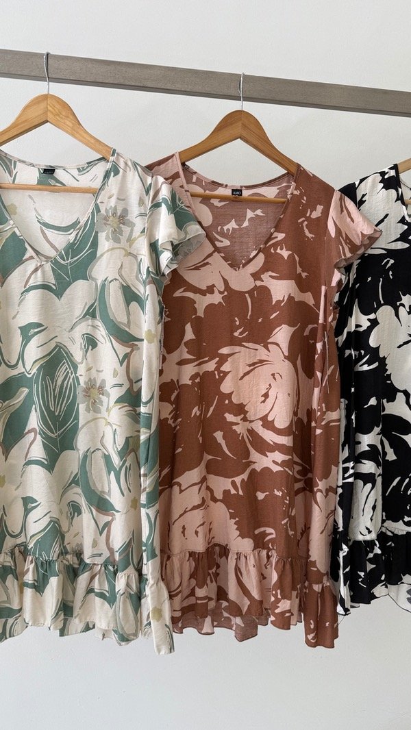 Vestido de voile rayón escote en V con volados en mangas y parte inferior. Queda por arriba de la rodilla! Talle único, abarca de un S al L