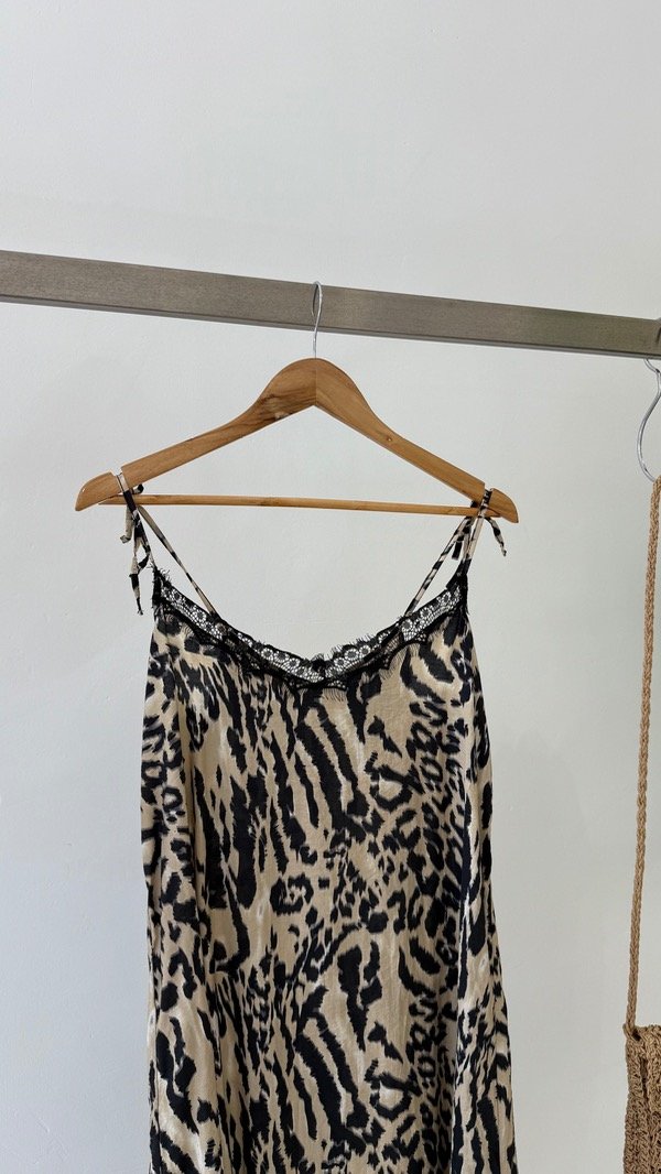 Vestido lencero de voile rayón, detalle de puntilla en escote y breteles regulables. Talle único, abarca de un S al L
