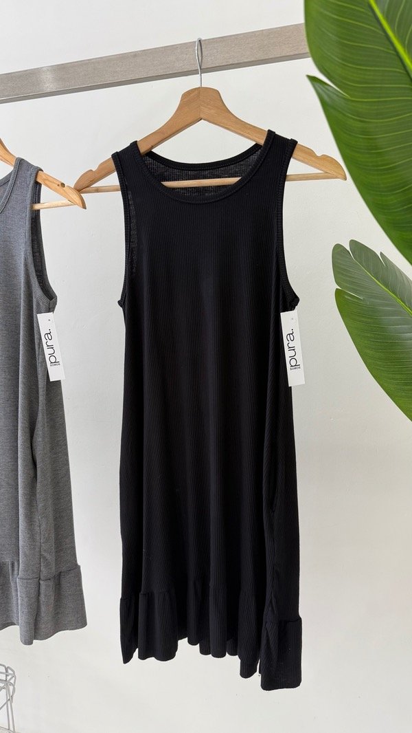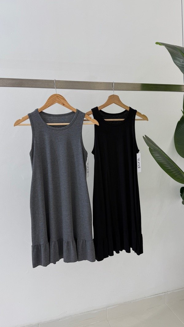 Vestido corto de Morley con lycra. Volados y bolsillos. Talle único, abarca de un S al L
