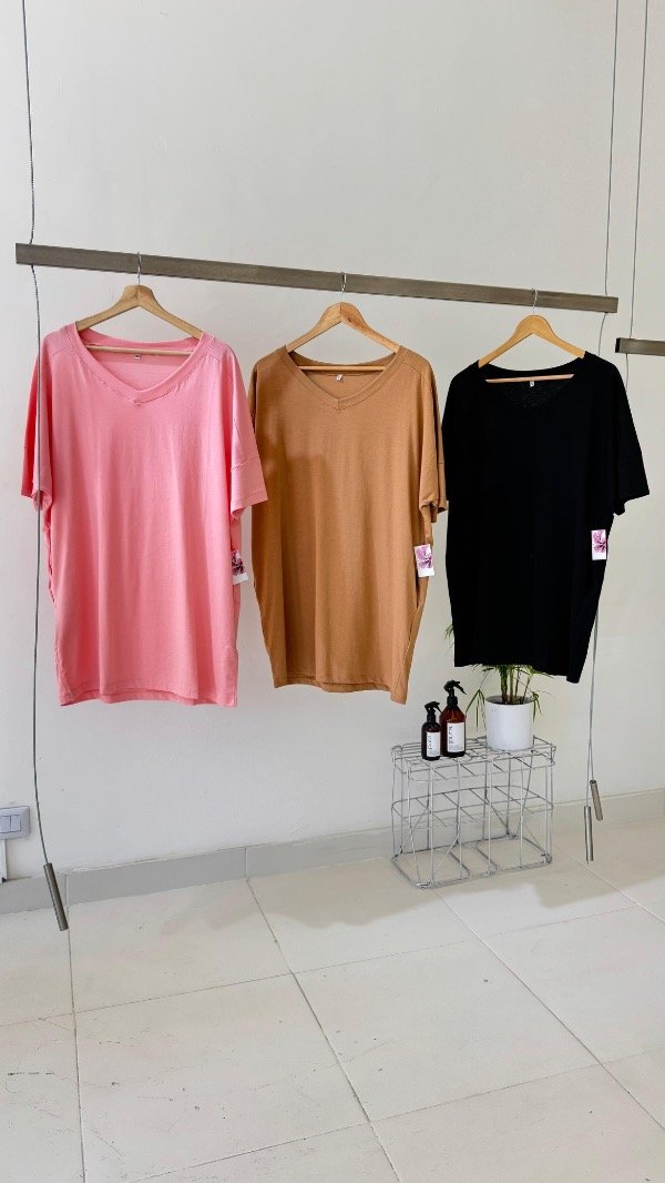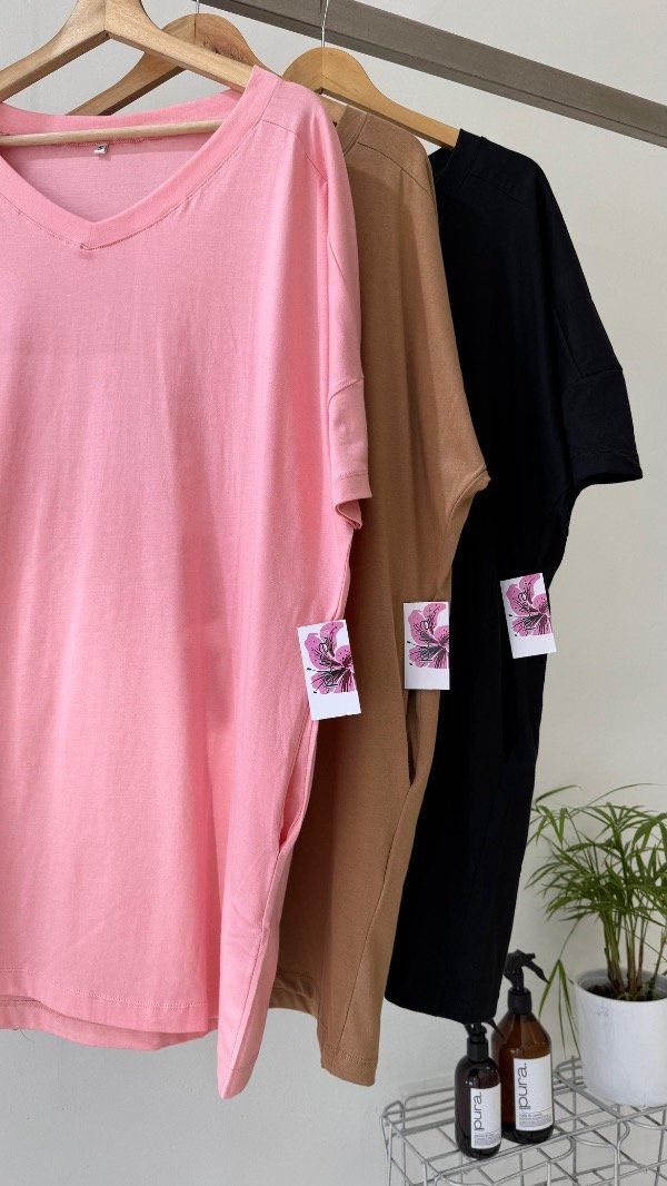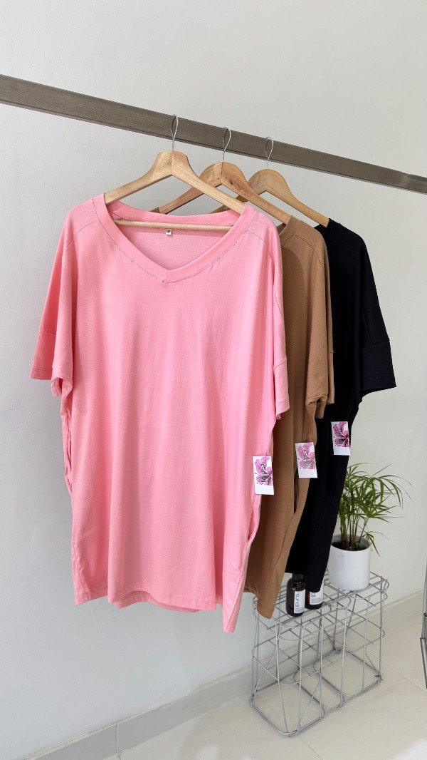 Vestido tipo remeron de algodón escote en V con bolsillos. Talle único, abarca de un S al XXL