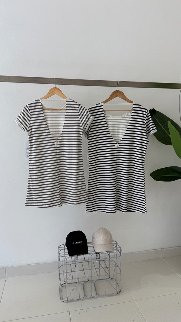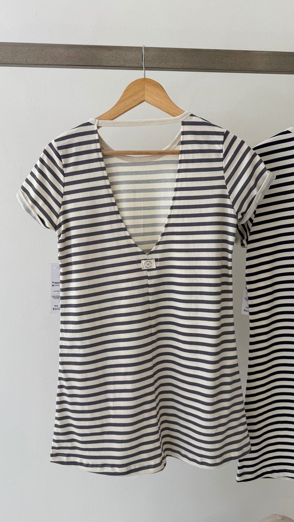 Vestido de algodón rayado con espalda descubierta en V.