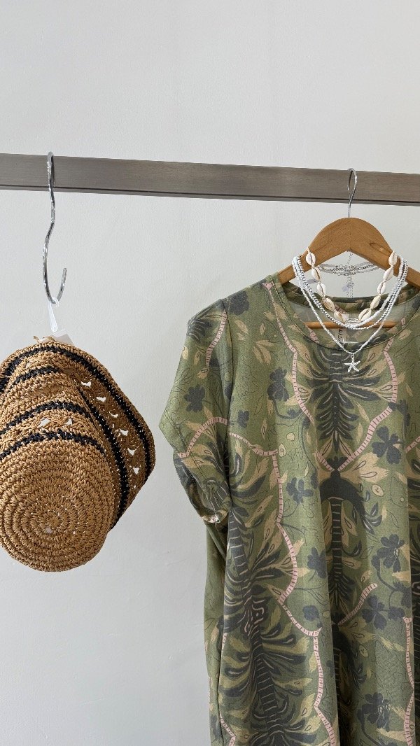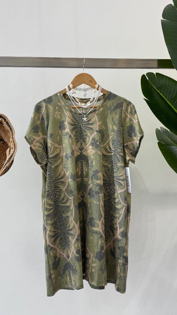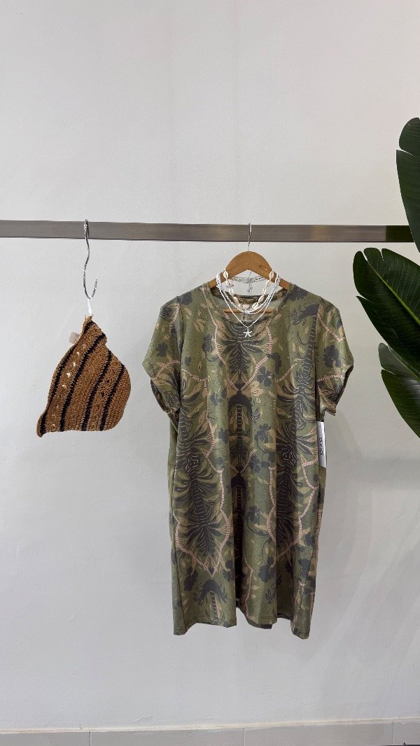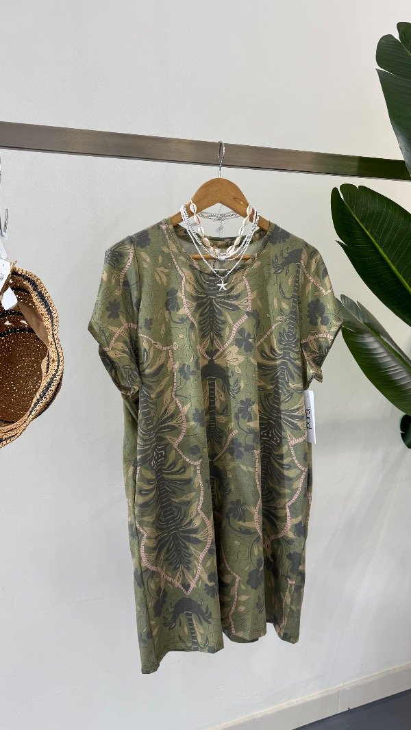 Vestido de algodón estampado con cuello redondo. Talle único, abarca de un S al XL