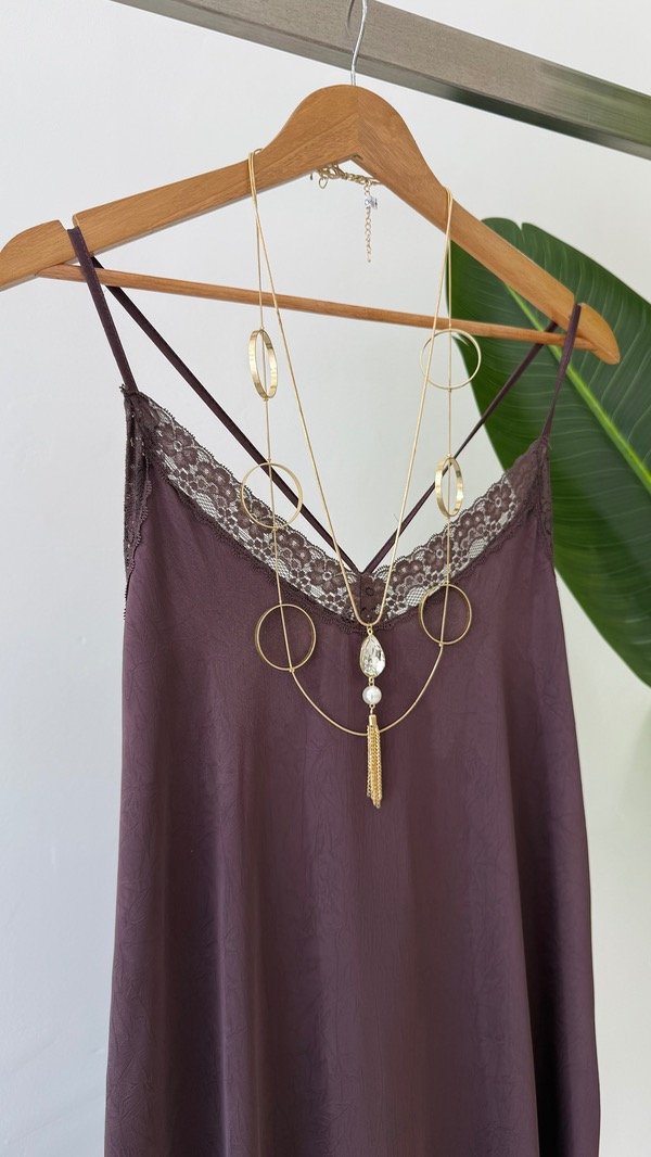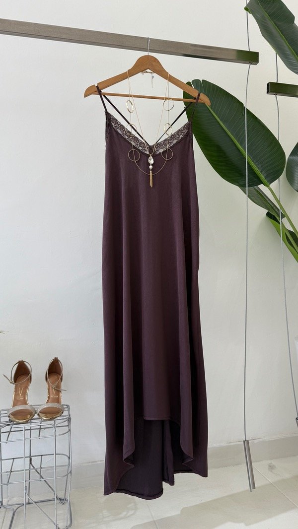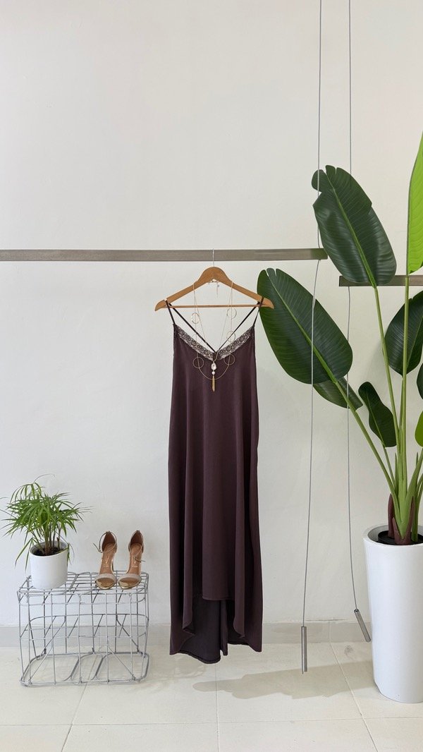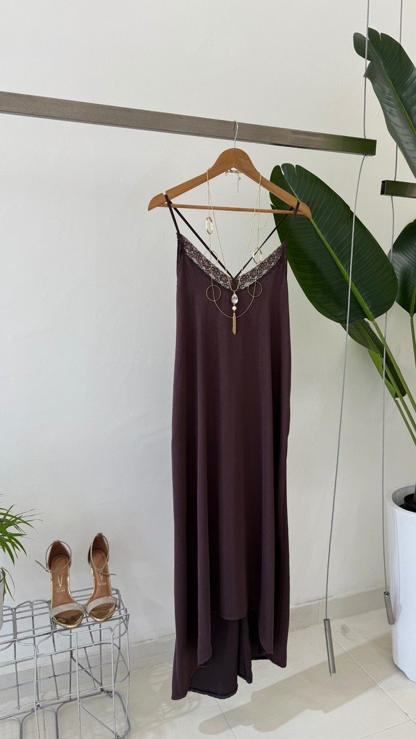 Vestido de seda con puntilla de encaje. Talle único, abarca de un S al L